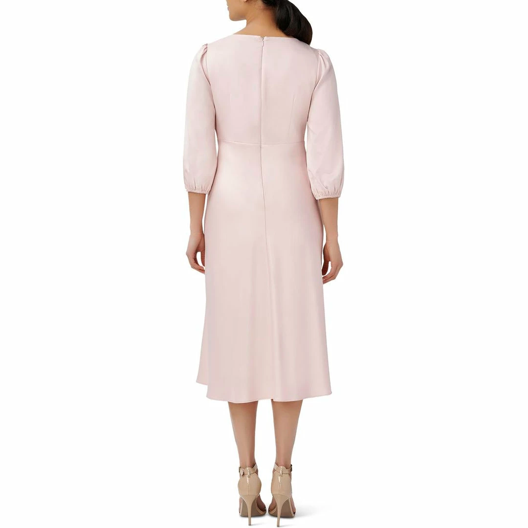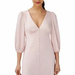 This satin button down empire midi dress by Adrianna Papell radiates femininity and arrogance. Made with 100% Polyester. This dress flaunts a vintage-style button down design and billowy blouson sleeves. It features a v-neck cut and button closures.