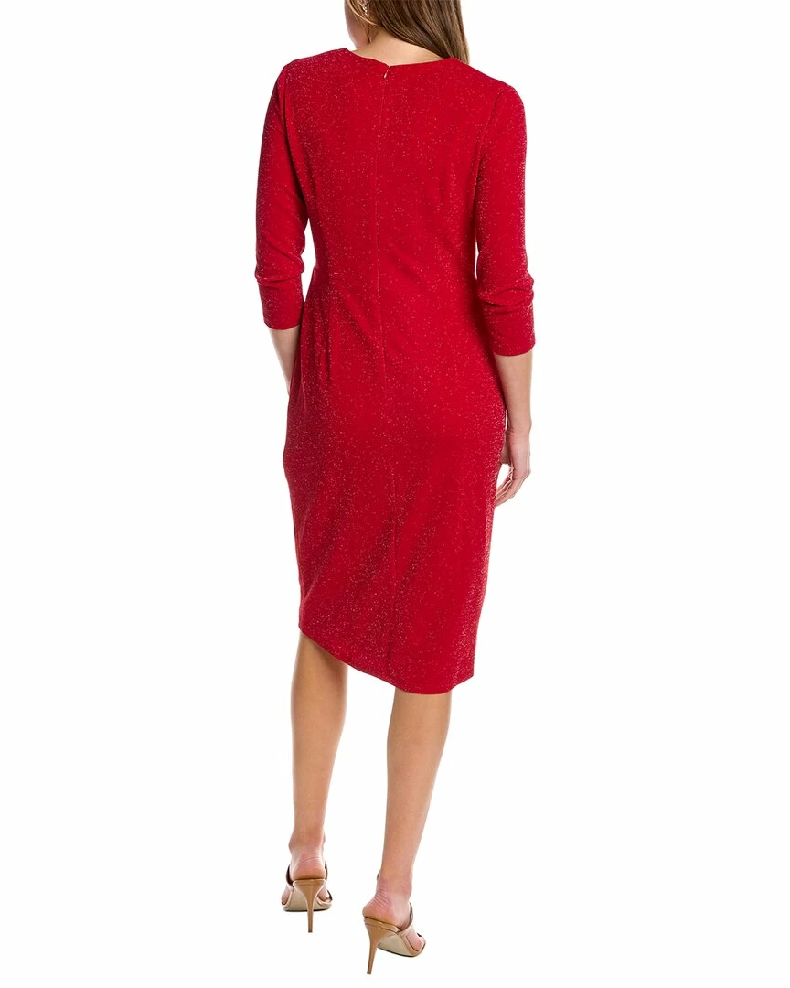 - Design Details – Glitter Design, Surplice Bust, Pleated Waist, 3/4-Length Sleeves, And Tulip Hem